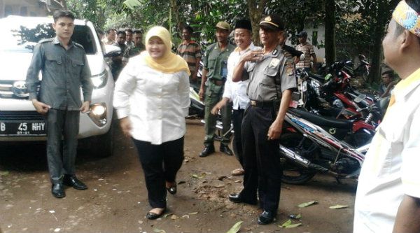 Polsek Setu kawal pengamanan cabup Bekasi Neneng Hasanah Yasin pada acara silaturahmi dengan masyarakat Kampung Sadang, Selasa 20 Desember 2016.[RAD]