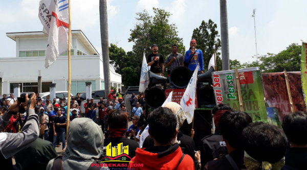 Kasi Humas Polsek Aiptu Parjiman yang dikonfirmasi menyatakan, untuk mengamankan jalannya aksi ratusan buruh, jajaran Polsek, Polrestro Bekasi, membantu Polsek Cikarang Barat.