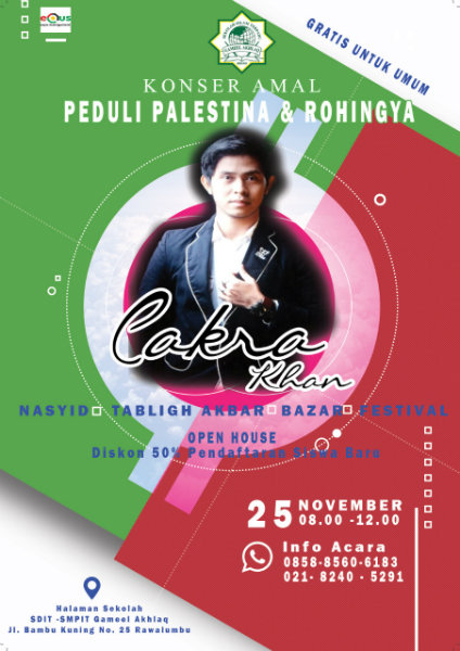 Melihat kondisi tersebut Gameel Akhlaq Islamic School (GAMAIS) bekerjasama dengan Equs Management mengadakan Konser Amal Penggalangan Dana Untuk Palestina dan Rohingnya bersama Cakra Khan di lapangan utama SDIT – SMPIT Gameel Akhlaq, Jalan Bambu Kuning No.25 Kelurahan Sepanjang Jaya, Rawalumbu, Kota Bekasi.