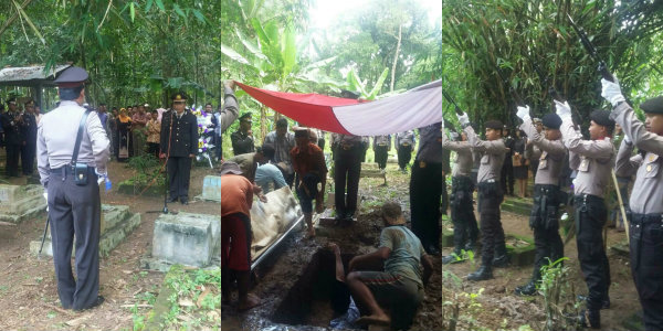 Selanjuntnya, jenazah di makamkan pukul 09:15, dengan upacara penghormatan “Tembakan Salto” oleh jajaran Polres Kebumen.[RAD]