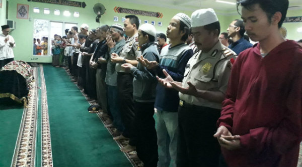 Kapolsek, Waka Polsek, dan Aipda Hari Cahyono Binmaspol Desa Burangkeng, langsung bertakjiah ke rumah duka dan ikut melakukan shalat jenazah sebelum dibawa menuju kampung halaman.