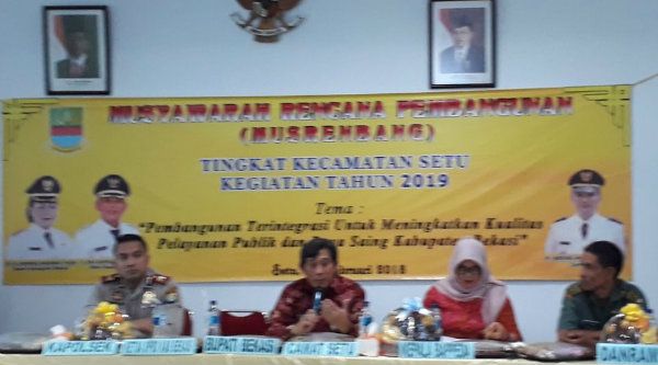 Acara yang dihadiri sejumlah Muspika Setu dan para kepala sekolah SLTP dan SLTA itu membahas pembangunan jalan lingkungan desa, pembangunan dan renovasi sekolah.