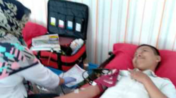 Kegiatan donor darah dan pemeriksaan PTM terselenggara berkat kerjasama antara pihak Puskesmas Margajaya dan Palang Merah Indonesia (PMI) Kota Bekasi berlangsung di ruang aula Sekretaris Daerah Kota Bekasi, Senin 3 September 2018.