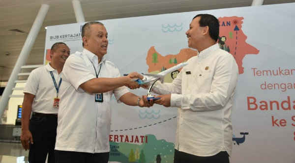 “Alhamdulilah berkat koordinasi yang baik dengan Gubernur, Kementerian Pariwisata, Kementrian Perhubungan, dan hasil kajian Garuda. Pagi hari ini melaksanakan penerbangan perdana rute Kertajati – Tanjung Karang – Palembang pp,” ujar Iwa.