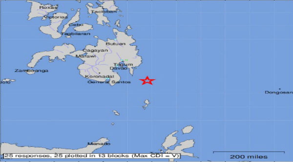 Berdasarkan analisa intensitas gempa dirasakan tidak ada daerah di Indonesia yang terdapat intensitas gempa yang merusak. Di Melonguane Talaud IV MMI, Tahuna Sangihe III-IV MMI, Siau Sitaro, Tobelo, Morotai III MMI, Manado, Ternate, Jailolo II MMI. Melihat skala intensitas gempa tersebut tidak ada kerusakan besar. Umumnya bangunan akam rusak jika diguncang gempa dengan intensitas di atas VI MMI.