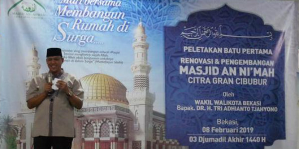 “Harapan saya ke depan semoga setelah di renovasi masjid ini menambah fasilitas untuk pendidikan dan ada kuliner nya supaya masyarakat lebih banyak lagi yang datang ke masjid. Contohnya, Taman Pendidikan Al Quran (TPA) untuk anak-anak warga sekitar masjid mudah-mudahan bisa di bangun lagi untuk Madrasah. Dan kuliner, karna adanya di kawasan masjid jadi kulinernya bisa menjadi nilai ekonomis yang dapat membantu pengurus serta warga masyarkat yang tinggal di sekitar masjid,” kata Tri saat peletakan batu pertama renovasi dan pengembangan Masjid Jami An Ni’mah di Perumahan Citra Gran Cibubur, Jumat 8 February 2019.