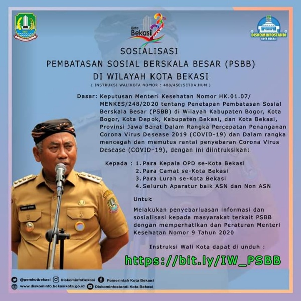 “PSBB di Kota Bekasi dilakukan unsur pihak keamanan TNI, Polri, Satpol PP, Dinas Perhubungan, Dinas Kesehatan/Tenaga medis dan sukarelawan dari Aparatur ASN dan non-ASN Pemkot Bekasi,” ujar Wali Kota.