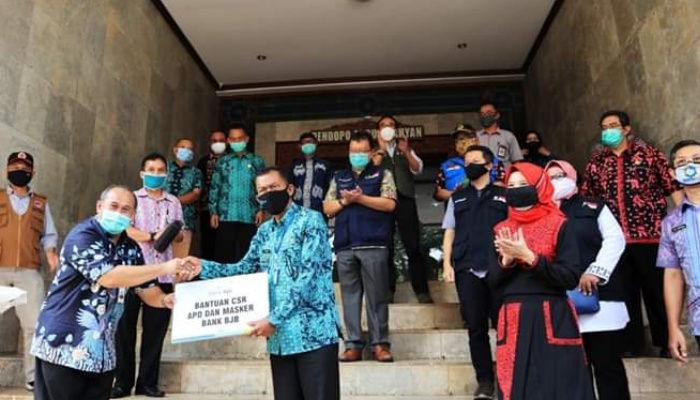 Bantuan tersebut terdiri dari APD berupa masker, alat cuci tangan, diberikan pihak Bank BJB, dan Kementerian Ketenagakerjaan melalui Balai Latihan Kerja (BLK) Dinas Tenaga Kerja dan Transmigrasi Provinsi Jawa Barat.