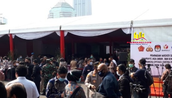 Acara dengan menggelar tenda besar di tengah lapangan Dirlantas Polda Metro Jaya, dihadiri Mentri BUMN selaku Ketua KCP PEN Erick Thohir, Gubernur DKI Jakarta Anies Baswedan, Kepala BNPB Letjen Doni Monardo, Wakasad, Pejabat Utama Mabes Polri dan Mabes TNI, Pejabat Utama Polda Metro Jaya, Pejabat Utama Kodam Jayakarta, Imam Masjid Istiqlal, perwakilan KPU, MUI serta pasangan calon Pilkada 2020, digelar di Lapangan Ditlantas Polda Metro Jaya, Kamis (10/9/2020).