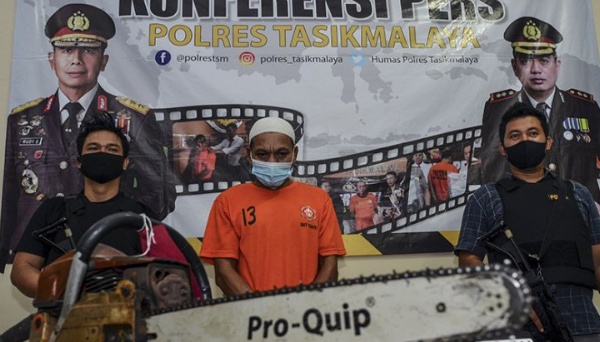 Polisi menunjukan tersangka pembalakan liar dan barang bukti saat konferensi pers di Mako Polres Tasikmalaya, Singaparna, Kabupaten Tasikmalaya, Jawa Barat, Selasa (13/10/2020).[Antara Jabar/Adeng Bustomi]POSBEKASI.COM | TASIKMALAYA – Satreskrim Polres Tasikmalaya bersama Perhutani KPH Tasikmalaya mengungkap kasus pembalakan liar dilahan hutan milik Perhutani di Petak 52 A blok Cikupa, Desa Pameutingan, Kecamatan Cipatujah dengan mengamankan barang bukti berupa 56 batang kayu mahoni, tiga batang kayu rimba, satu mesin gergaji, dan satu mobil Pikup serta satu unit turk, Selasa (13/10/2020).[Antaranews]