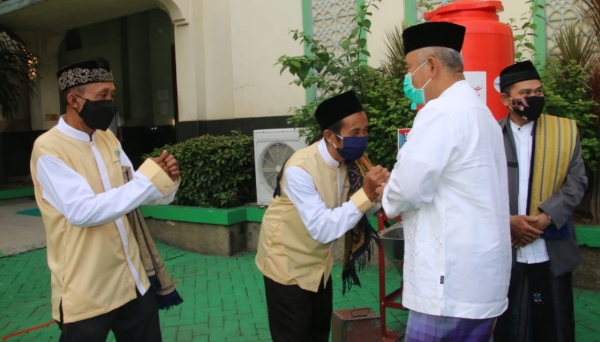 Secara bersama Wali Kota Bekasi Rahmat Effendi beserta Gunarti Rahmat Efendi dan Wakil Wali Kota Bekasi Tri Adhianto beserta Wiwiek Hargono Tri Adhianto hadir dalam pelaksanaan Shalat Idul Fitri 1442 H di Masjid Al Barkah Kota Bekasi, Kamis (13/5/2021).