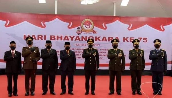 Dalam kesempatan tersebut, Kapolda Jawa Barat Irjen Pol Ahmad Dofiri bersama Forkopimda Jawa Barat dan instansi lainnya, serta Pejabat Utama Polda Jabar, mengikuti upacara peringatan Hari Bhayangkara ke-75 secara virtual.
