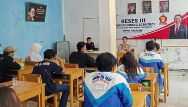 POSBEKASI.COM | SUKATANI -Anggota DPRD Jawa Barat, Irpan Haeroni menggelar Reses III Tahun Sidang 2020-2021 di SMK Bina Bangsa, Desa Sukadarma, Kecamatan Sukatani, Kabupaten Bekasi, Selasa (3/8/2021).
