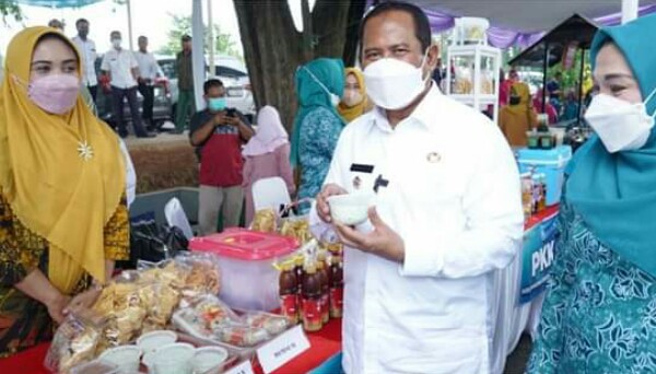 Plt Bupati Bekasi Ahkmad Marjuki didampingi Ketua Tim Penggerak PKK Kabupaten Bekasi, Sarem Akhmad Marjuki pada Ramadhan Festival di Taman Juang Museum Gedung Juang Bekasi, Tambun Selatan, Rabu 20 April 2022. [Posbekasi.com /Istimewa]