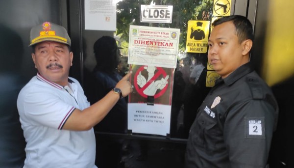 Penghentian kegiatan dilakukan Penyidik Pegawai Negeri Sipil (PPNS) Kota Bekasi dengan memasang stiker DIHENTIKAN terhadap tempat usahan tersebut.