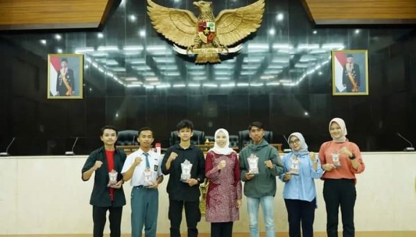 Wakil Ketua DPRD Provinsi Jawa Barat Ineu Purwadewi menyerahkan hadiah lomba desain poster dan lomba video vlog/dokumenter di Gedung DPRD Provinsi Jawa Barat, Selasa 12 Juli 2022. [Posbekasi.com /Istimewa]