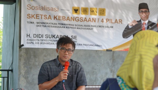 POSBEKASI.com | CIAMIS – Anggota DPRD Provinsi Jawa Barat, H. Didi Sukardi, sosialisasikan nilai-nilai Kebangsaan dan Konstitusi kepada generasi muda saat kegiatan Citra Bhakti Parlemen Dalam Sketsa Kebangsaan terkait Sosialisasi Empat Pilar Kebangsaan.