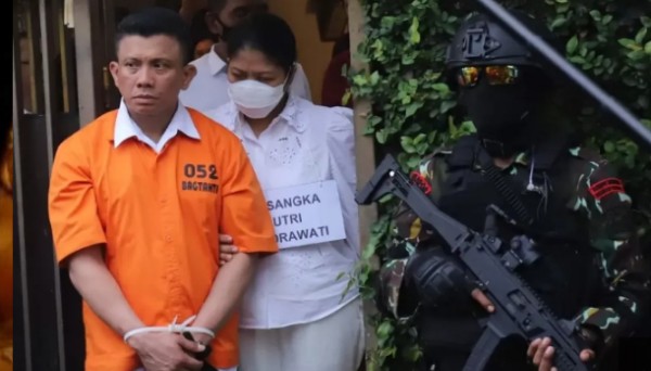 POSBEKASI.com | JAKARTA – Tersangka Putri Chandrawati (dua kiri) menggandeng tersangka Ferdy Sambo usai menjalani rekonstruksi terkait kasus pembunuhan berencana terhadap Brigadir J atau Yosua Hutabarat di rumah dinas Irjen Ferdy Sambo di Kompleks Polri Duren Tiga, Jakarta, Selasa 30 Agustus 2022.