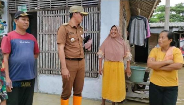 Camat Cabangbungin Asep Buhori meninjau warga terdampak banjir di Desa Lenggahsari, Kecamatan Cabangbungin, akibat luapan Sungai Citarum dan Ciherang yang merendam empat desa, Selasa 28 Februari 2023. [Posbekasi.com /Istimewa]