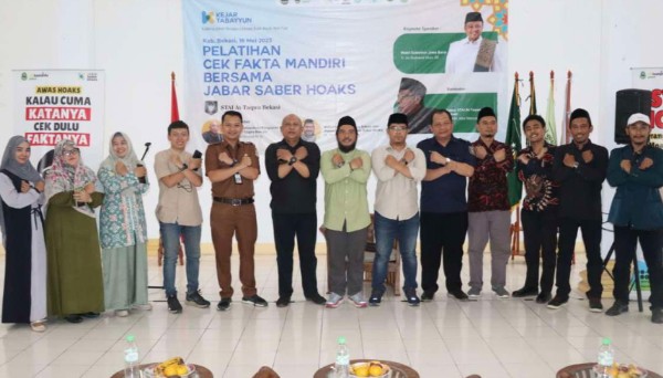 posBEKASI.com | BABELAN – Unit Jabar Saber Hoaks Pemprov Jawa Barat menggelar kegiatan Pelatihan Cek Fakta Mandiri Jabar Saber Hoaks, di aula Sekolah Tinggi Agama IsIam At-Taqwa (STAIA) Kecamatan Babelan, Kabupaten Bekasi, Selasa (16/5/2023).