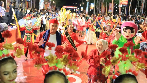Plt. Wali Kota Bekasi, Tri Adhianto bersama istri, Wiwiek Hargono beserta seluruh rombongan yang berjumlah kurang lebih 35 orang, turut serta dalam pawai tersebut yang juga mengikutsertakan para _ performers_ dari Dinas Pariwisata dan Kebudayaan Kota Bekasi yang menampilkan Tari Topeng Tunggal Kota Bekasi, Tari Ronggeng Beken, penampilan kostum hias, serta para peserta pawai membentangkan kain batik khas Kota Bekasi, kostum boneka besar Bang Bek dan Mpok Asi sebagai maskotnya Kota Bekasi, dan juga menampilkan fashion dari daur ulang sampah.