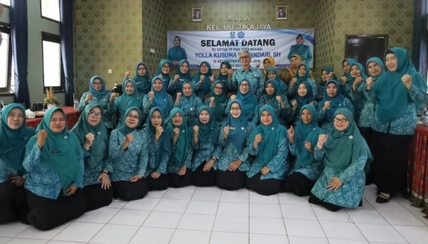 posBEKASI.com | MUSTIKAJAYA – Penjabat Ketua TP PKK Kota Bekasi, Yolla Kusuma Gani bersama jajaran pengurus PKK Kota Bekasi mengunjungi PKK Kecamatan Mustika Jaya. Diterima oleh Sekretaris Kecamatan Mustika Jaya, Hasan dan Ketua TP PKK Kecamatan Mustika Jaya, Hj. yati Nurhayati Jaya beserta para Ketua TP PKK Kelurahan se Kecamatan Mustika Jaya didampingi para Lurah.