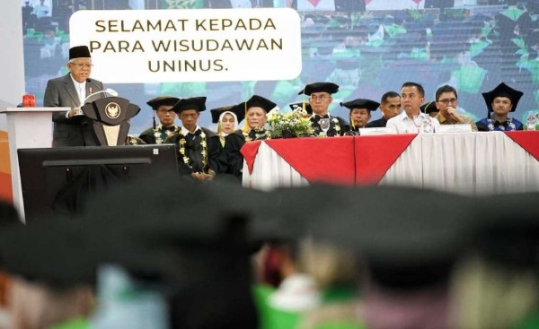 posBEKASI.com | BANDUNG – Wakil Presiden RI Ma’ruf Amin sampaikan orasi ilmiah pada Sidang Terbuka Senat dalam rangka wisuda ke-67 dan Milad ke-64 Universitas Islam Nusantara (Uninus), Kota Bandung, Kamis 16 November 2023.
