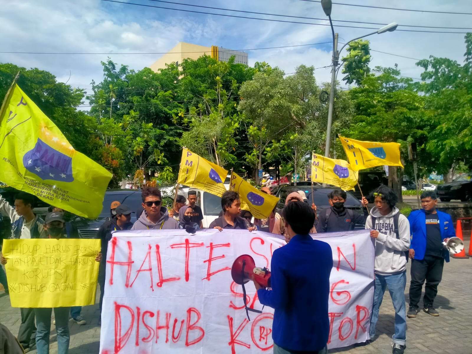 Sekadar diketahui, aksi unjuk rasa diikuti puluhan mahasiswa. Mereka berasal dari Komisariat Pergerakan Mahasiswa Islam Indonesia (PMII) Sekolah Tinggi Ilmu Ekonomi Syari’ah Mitra Karya. [rri]