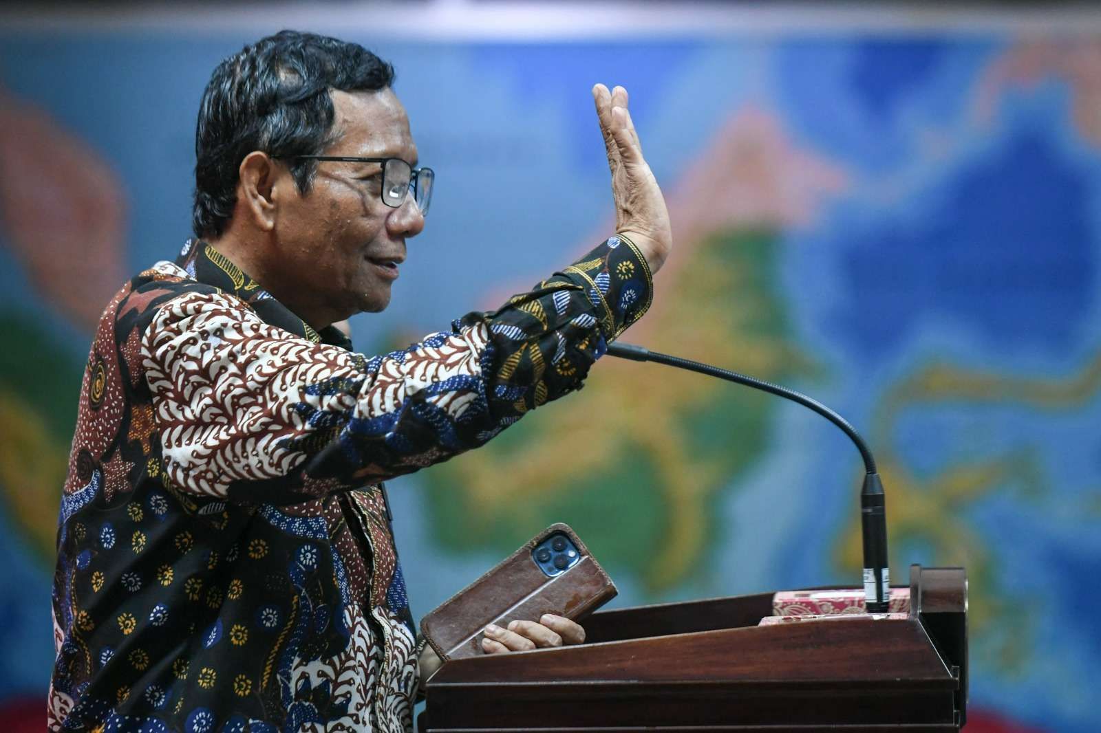 Mahfud menyampaikan keterangan pers didampingi Menteri Sekretaris Negara Pratikno. Keterangan pers disampaikan Mahfud usai bertemu Presiden Joko Widodo guna menyerahkan surat pengunduran diri di Istana Merdeka.