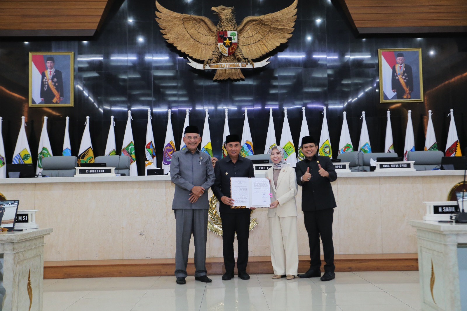 Untuk diketahui, rapat paripurna tersebut dipimpin langsung oleh Wakil Ketua DPRD Jawa Barat Achmad Ru’yat, turut hadir Wakil Ketua DPRD Jawa Barat Ineu Purwadewi Sundari dan Oleh Soleh serta Pj Gubernur Jabar Bey Machmudin juga Forum Koordinasi Pimpinan Daerah Provinsi Jabar atau yang mewakili.