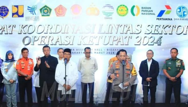“Sebagaimana tadi disampaikan Bapak Menko PMK, bahwa mudik tahun 2024 ini terjadi peningkatan kurang lebih 56 persen kalau tidak salah tadi, dibandingkan dengan mudik 2023,” kata Jenderal Sigit usai memimpin Rapat Koordinasi Lintas Sektoral kesiapan pelaksanaan Operasi Ketupat 2024 bersama Menteri Koordinator Bidang Pembangunan Manusia dan Kebudayaan (PMK) Muhadjir Effendy, di Hotel Bidakara, Jakarta Selatan, Senin (25/3/2024).
