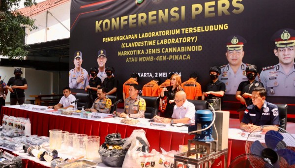 “Lalu ada GBH (20) tahun berperan menjadi kurir dari pihak pembeli atau reseller dan MFH (24) sebagai bos, pemodal sekaligus orang yang memandu tersangka H dan S dalam proses pengolahan 5CL menjadi MDMB-4EN-PINACA,” kata Suyudi.