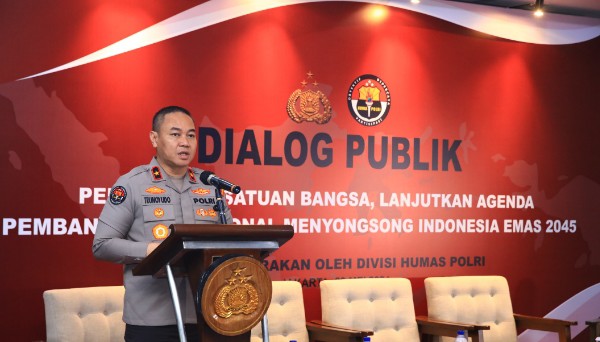 posBEKASI.com | JAKARTA – Divisi Humas Polri menggelar dialog publik ‘Perkuat Persatuan Bangsa, Lanjutkan Agenda Pembangunan Nasional Menyongsong Indonesia Emas 2045″ di Veranda Hotel Pakubuwono, Jakarta Selatan, Rabu (29/5/2024). Karopenmas Divisi Humas Polri Brigjen Pol Trunoyudo Wisnu Andiko mewakili Kadiv Humas Polri Irjen Pol Sandi Nugroho, menyebut dialog ini bertujuan untuk mendapatkan berbagai masukan strategis. Sekaligus untuk menegaskan komitmen dalam upaya memperkuat soliditas persatuan bangsa pasca pemilu 2024.