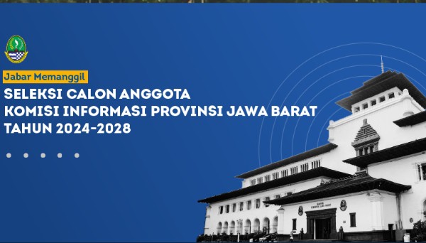 Pendaftaran seleksi calon anggota Komisi Informasi Provinsi Jawa Barat Tahun 2024-2028 akan berlangsung pada 4-17 Juli 2024. Pendaftaran dan penyampaian dokumen kelengkapan administrasi hanya dilakukan secara daring melalui laman https://jabarprov.go.id/.