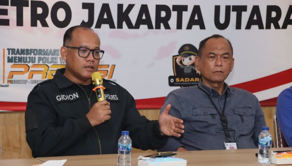 posBEKASI.com | JAKARTA – Kapolres Metro Jakarta Utara Kombes Pol Gidion Arif Setyawan dan Forkopimko (Forum Koordinasi Pimpinan Kota) menggelar Ngopi Kamtibmas di Kantor RW 11, Kelurahan Ancol, Pademangan, Jakarta Utara, Kamis (8/8/2024).