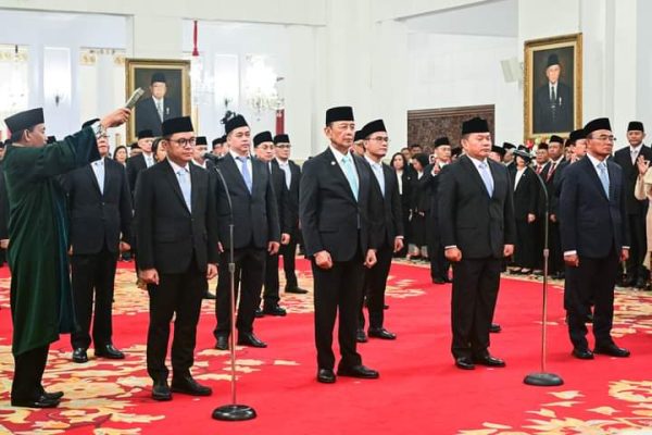 “Bahwa saya akan setia kepada Undang-Undang Dasar Negara Republik Indonesia tahun 1945 serta akan menjalankan segala peraturan perundang-undangan dengan selurus-lurusnya demi dharmabakti saya kepada bangsa dan negara. Bahwa saya dalam menjalankan tugas jabatan akan menjunjung tinggi etika jabatan, bekerja dengan sebaik-baiknya, dengan penuh rasa tanggung jawab,” ucap Presiden mendiktekan sumpah jabatan yang diikuti para penasihat, utusan, staf khusus Presiden. [rri/ant]