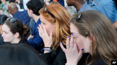 Dua ribu pendukung Harris tidak beranjak hingga lepas tengah malam pada Selasa. Suasananya terasa makin suram ketika semakin banyak negara bagian yang menetapkan kemenangan Trump.