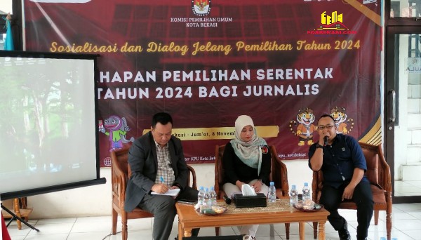 posBEKASI.com | BEKASI – Komisi Pemilihan Umum (KPU) kota Bekasi menggelar sosialisasi dan dialog bersama para jurnalis menjelang Pilkada serentak 2024 untuk meningkatkan partisipasi dan pemahaman masyarakat terkait proses Pilkada yang akan berlangsung pada 27 November 2024 untuk pemilihan gubernur dan wakil gubernur, serta walikota dan wakil walikota.