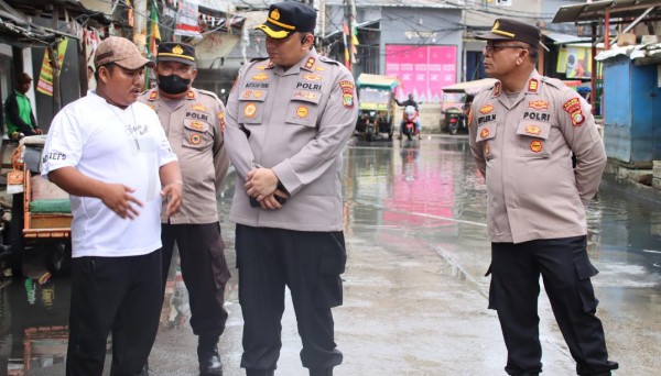 Kapolres Pelabuhan Tanjung Priok, AKBP Martuasah H. Tobing, terjun langsung melakukan monitoring memberikan bantuan sembako pada warga yang terdampak banjir.