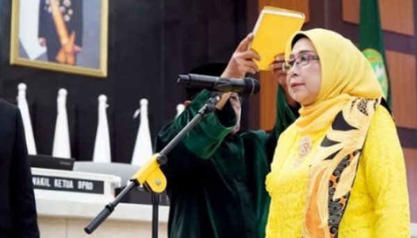 Tati Supriati Irwan saat dilantik sebagai anggota Pengganti Antar Waktu (PAW) dari Fraksi Golkar, pada Rapat Paripurna DPRD Provinsi Jawa Barat, di Gedung DPRD Jawa Barat, Kota Bandung, Kamis (6/2/2025). Posbekasi.com /DPRD Jabar