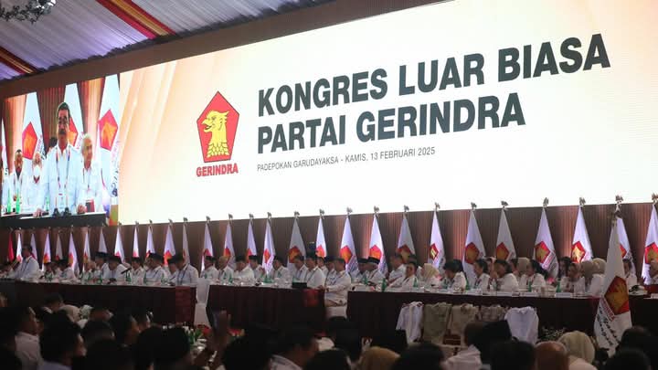 “Kongres meminta Pak Prabowo agar bersedia maju kembali sebagai calon presiden. Beliau menjawab, Insya Allah, namun meminta waktu untuk menyelesaikan tugasnya sebagai presiden dan memenuhi janji kepada rakyat,” kata Sekjen Partai Gerindra Ahmad Muzani usai acara KLB Gerindra yang digelar di Hambalang, Bogor, Jawa Barat, Kamis (13/2/2025).
