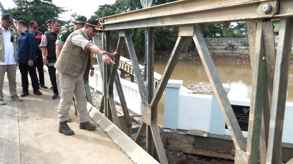 Di tempat ini dirinya pun melihat jembatan yang sudah mulai terbangun dan menghubungkan dua desa terdampak, dirinya mengemukakan merujuk data di Kabupaten Bogor ada 7 jembatan yang alami kerusakan pascabanjir.