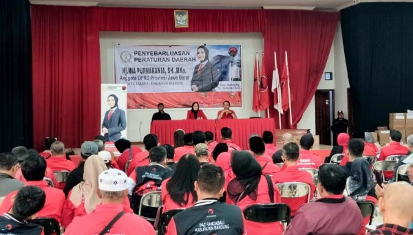 “Kami harus mendorong dan memfasilitasi mereka agar memiliki daya saing,” ujar anggota DPRD Provinsi Jawa Barat Daerah Pemilihan II (Kabupaten Bandung), Hj. Nia Purnakania, S.H., M.Kn, saat Penyebarluasan Peraturan Daerah (Perda) Provinsi Jawa Barat Nomor 15 Tahun 2017 tentang Pengembangan Ekonomi Kreatif, di Aula DPC PDI Perjuangan, Jl. Jaksa Naranata, Kecamatan Baleendah, Kabupaten Bandung, Selasa (25/3/2025).