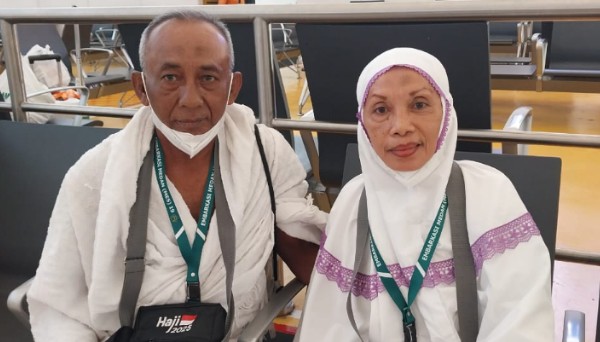 posBEKASI.com | JEDDAH – Pasangan suami istri asal Labuhanbatu, Sumatera Utara, Sumardi Kromo Pawiro (61) dan Effy Muhammad Yusuf Hasibuan (58) tampak sumringah saat ditemui di Paviliun Bandara King Abdul Aziz, Jeddah.