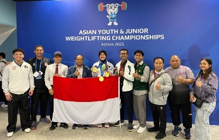 Lifter muda Indonesia tampil memukau dan sukses mengharumkan nama bangsa dengan torehan medali gemilang pada Kejuaraan Atlet Angkat Besi Remaja dan Junior Asia 2025 di Astana, Kazakhstan, pada 4 – 10 Juli 2025. Posbekasi.com /Ist