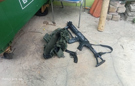Pasca-ledakan tersebut, Tim Gegana Densus 88 Anti Teror menemukan benda menyerupai senjata seperti senapan dan pistol airsoft gun di dekat terduga pelaku di lokasi kejadian.